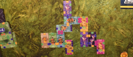Mit der Mondaufgang Erweiterung wird Schritt 4 nochmal viel interessanter. Denn dann sind die Mondplättchen unter die Landplättchen gemischt worden. Immer dann, wenn ein Mondplättchen beim Nachziehen aufgedeckt wird, landet es auf der Mondereignistafel. Dafür wird ein neues Landplättchen aufgedeckt, um die Auslage aufzufüllen. Sollten zu irgendeinem Zeitpunkt eine bestimmte, von der Spielerzahl abhängige Anzahl an Mondplättchen auf der Mondereignistafel liegen, wird eine Zwischenwertung getriggert. Es gibt wie beschrieben drei verschiedene Mondereignistafeln mit unterschiedlichen Zwischenwertungen. Es wird überprüft welcher Spieler zu diesem Zeitpunkt die Mehrheit an entweder Gebäuden, Bewohnern oder Relikten in seiner Landschaft hat. Dieser erhält dann alle Mondplättchen auf der Mondereignistafel. Bei Gleichstand werden alle Mondplättchen abgeworfen und alle gehen leer aus.