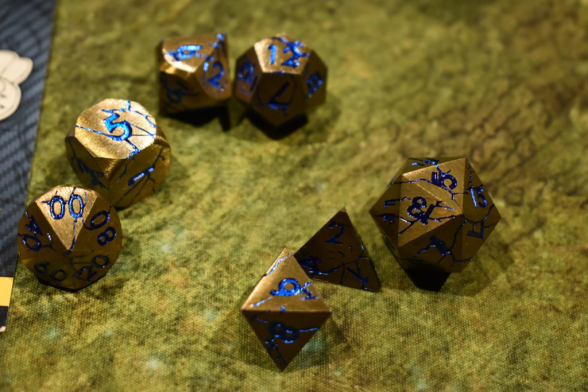 Wie bereits erwähnt, spielen wir nur Brettspiele und keine Rollenspiele wie Dungeons and Dragons. Trotzdem haben Brettspiele natürlich auch Würfel und davon häufig zu wenige. Außerdem schaffen es die Würfel immer wieder in den Spielbereich zu rollen. Somit sind die Dice Trays oder Arenas ein gutes Hilfsmittel für das gemeinsame Spiel. Auch, um die Würfel bei einem sehr großen Tisch weitergeben zu können. Die Metall- und der Riesenwürfel sind natürlich ein Hingucker. Die Metallwürfel dürften wahrscheinlich mehrere Generationen überstehen und liegen, wie bereits erwähnt, gut in der Hand. Bei dem Riesenwürfel sind wir uns nicht ganz sicher. Er wirkt sehr robust und stabil, aber das flüssige Innere könnte natürlich ein Schwachpunkt sein. Für ihn braucht man auch sehr viel Platz, aber das sollte man auch vorher wissen. Für uns sind von dem Set in erster Linie die W6 und W20 relevant, die anderen müssen erstmal noch eine Weile auf ihren Einsatz warten. Optisch gesehen ist alles auf jeden Fall ein Highlight und es macht jetzt ein Stück mehr Spaß zu würfeln.