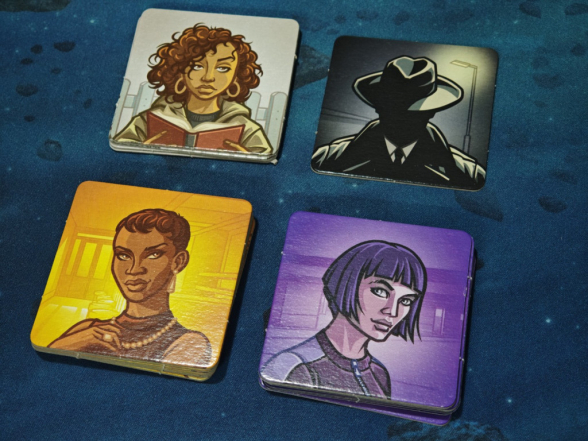 Die Schlüsselkarte zeigt an den Rändern eine orangene oder violette Markierung – das entsprechende Team beginnt und muss deshalb ein Bild mehr erraten. Es erhält also das Plättchen des Doppelagenten und dreht es auf die Seite, welche einen Agenten in Teamfarbe zeigt. Nun kann es losgehen.