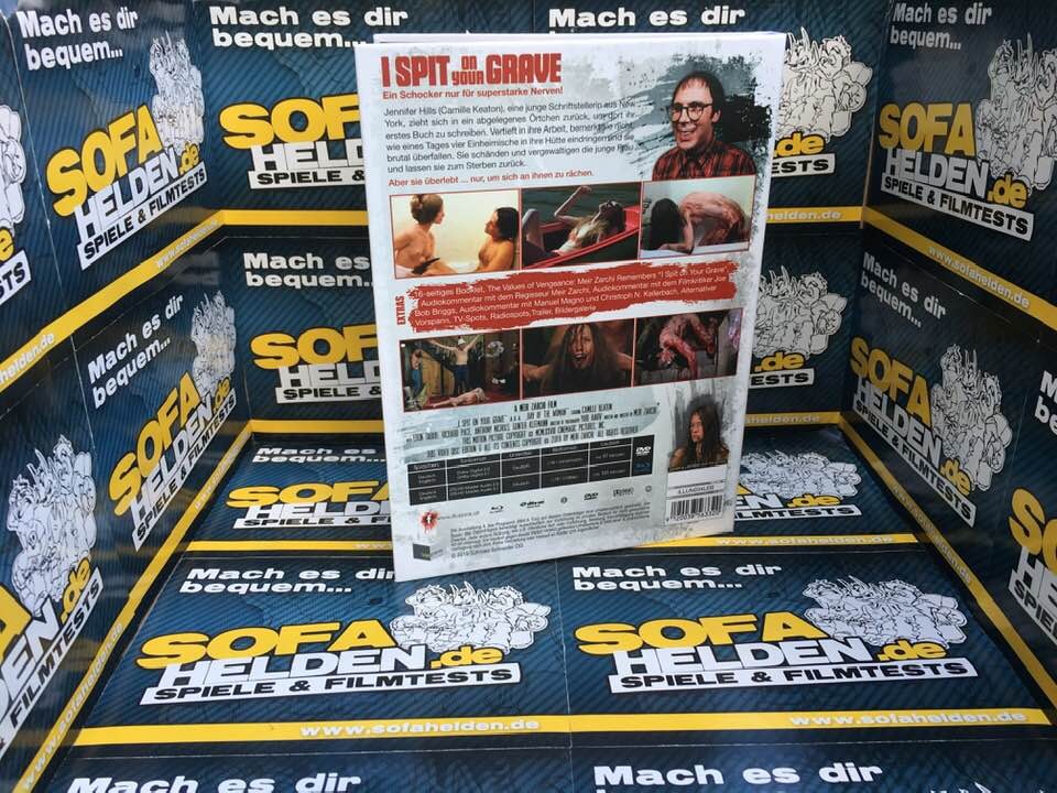 Das Mediabook vom österreichischem Label Illusions Unltd. erschien in vier verschiedenen Cover-Varianten mit einer strengen Limitierung von 333 (Cover D) bis 666 (Cover A) Stück. Drei davon sind ziemlich ähnlich und zeigen die Rückseite der Schauspielerin Camille Keaton und ein bisschen Text. Das vierte kommt mit einem Artwork daher, alle vier haben allerdings einen anderen Titel. Da es viele Alternativtitel wie zum Beispiel Blood Angel oder Day of the Woman gab, hat sich dies angeboten. Auf der Rückseite gibt es den typischen Klappentext, Szenenfotos und alle Informationen rund um den Film. Cover & Bilder © Illusions Unltd. Films / Produktfotos: www.sofahelden.de Das Fazit von: Panikmike