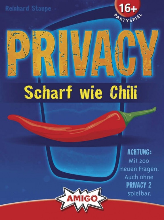 Privacy befindet sich in einem recht kleinen Karton. Auf der Front ist eine Chili abgebildet, wie immer bei Amigo ziert die Unterseite des Kartons das typische Rot. Auf der Rückseite steht eine kleine Einleitung zum Spiel und es sind dort einige der vorhandenen Spielmaterialien abgebildet. Im Karton befinden sich zwei Kartenpäckchen sowie drei Stanzpappen mit kleinen Antwortplättchen, die mit "Ja" oder "Nein" beschriftet sind. Hat man alles ausgepackt, die Tippkarten aus den Stanzpappen gelöst und die beiden Kartensorten der Farbe nach sortiert, kann es auch schon losgehen. Zum Spielen wird zusätzlich etwas zum Notieren der Punkte benötigt, Block und Stift reichen dazu vollkommen aus.