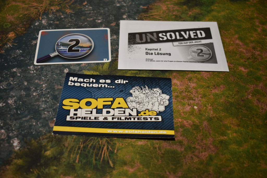 Unsolved - Tod auf der Jacht ist ein kooperatives Krimispiel, bei dem es darum geht mit Hilfe der Hinweise auf den Karten, die auf der Startkarte dargestellte Situation zu erklären. Dabei müssen am Ende des Spiels fünf Fragen beantwortet werden. Je nachdem, ob Ihr in Teams gegeneinander oder gemeinsam spielt, müsst Ihr am Rundenende die Fragen gemeinsam oder getrennt voneinander bewerten.