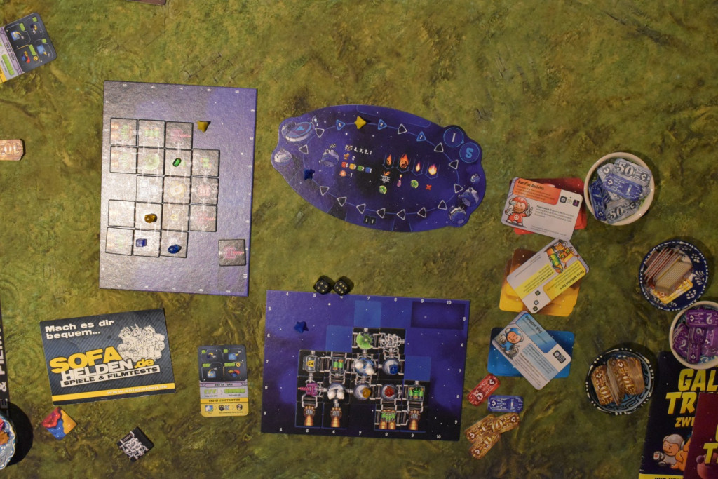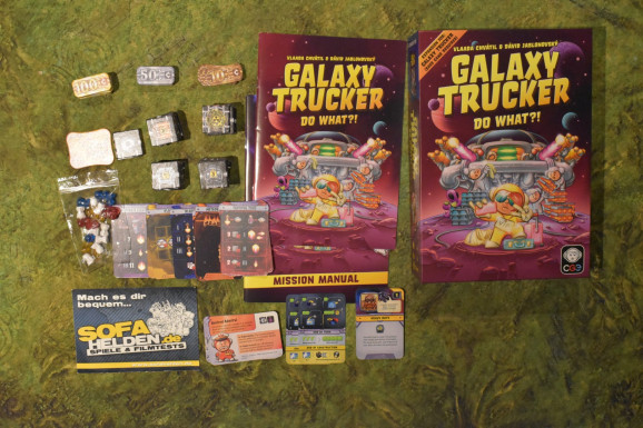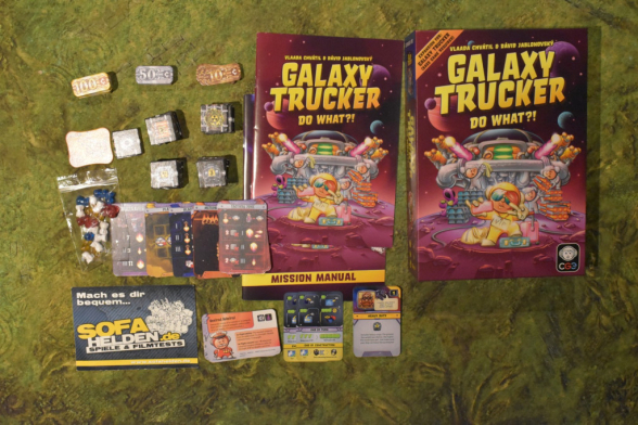 Kommen wir zum Spielaufbau. Generell gibt es erst einmal keine Unterschiede zum Grundspiel. Galaxy Truckers: Do What?! ist modular. Das heißt, Ihr könnt die verschiedenen Komponenten der Erweiterung nach Wahl einsetzen. Dies sind die drei Module: