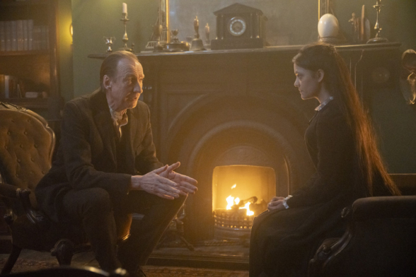 Fans des genialen britischen Detektivs, seid gewarnt! Zwar orientiert sich Sherlock & Daughter an der ursprünglichen Vorlage und nutzt bestimmte Charaktereigenschaften, Figuren, Locations sowie andere Details zur Verbindung. Letztendlich bietet die Serie aber eine völlig neue, eigenständige Geschichte rund um das Leben von Sherlock Holmes, und weicht damit stark von Altbekanntem ab. Grundsätzlich ist die Handlung dabei im Anschluss an Holmes´ Kampf gegen seinen Erzfeind Professor James Moriarty angesiedelt, der hier zwar auch auftritt (und von Dougray Scott herrlich bizarr und ein wenig Over-the-top dargestellt wird), jedoch einer völlig anderen Bedrohung den Platz als Gegenspieler überlassen hat. Im Mittelpunkt der Geschichte steht - wie der Titel bereits vermuten lässt - die Beziehung zwischen Sherlock Holmes und seiner vermeintlichen Tochter, was dank der sehr guten Chemie zwischen David Thewlis und Blu Hunt sowie der dadurch entstehenden Dynamik innerhalb der Inszenierung wunderbar funktioniert und das Geschehen stets unterhaltsam gestaltet. Für die benötigte Spannung sorgt unterdessen die begleitende Haupthandlung, die sich zum einen in die Suche nach den entführten Gefährten Holmes´, zum anderen in die Konfrontation mit einem mysteriösen Verbrechersyndikat gliedert, und sich durch die gesamten acht Episoden der ersten Staffel zieht. Auf einzelne Kriminalfälle oder unnötige Nebenhandlungen wird hierbei zugunsten des Auf- und Ausbaus der Geschichte bewusst verzichtet. Zahlreiche Wendungen halten die Erzählung dabei durchwegs spannend, während dezent aber harmonisch eingesetzter Humor für eine gewisse Auflockerung sorgt, ohne den Ernst des eigentlichen Geschehens zu vernachlässigen. Stilistisch setzt Sherlock & Daughter auf eine authentische Ausstattung sowie einen wunderbaren visuellen Retro-Look, der sich gekonnt von den aktuell üblichen Hochglanzproduktionen abhebt und sogar ein wenig Theater-Flair versprüht, was hervorragend zur generellen erzählerischen Ausrichtung der Serie passt.