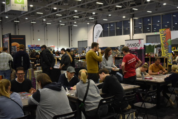 Was uns im Vorfeld aber schon aufgefallen ist: man konnte den einen oder anderen neuen Verlag entdecken. Hierzu gehörte zum Beispiel auch der Rollen- und Brettspielverlag Squink, den wir schon auf der SPIEL 2025 unter die Lupe genommen hatten. Kurz vorher hatten wir gerade erst NussFieber getestet und wollten uns nach den neusten Infos zu Fateforge und dem Crowdfounding-Projekt Draconis erkundigen. Letzteres läuft übrigens nicht mehr lange und wir haben selbst investiert. Denn es wurde uns leider zu gut als „anfängertaugliches Rollenspiel für die ganze Familie“ gepitcht. Anschließend ließen wir uns auf der großen Spielfläche nieder, um ein paar Spiele zu spielen. Hierzu gehörten das etwas ältere Karak von Kosmos, Kavango von Schmidt Spiele und das lange unterschätzte Neuland von Game Factory. Doch wie so oft, verging die Zeit wieder viel zu schnell und es war plötzlich 18:00. Noch eine Stunde bis zu unserem Event…