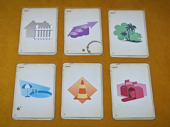 Wichtig zu wissen: die Verteilung der Hausnummern und Aktionssymbole ist nicht gleichmäßig, sodass man sich auf jeden Fall zuvor die genauen Häufigkeiten anschauen sollte. Bei den Hausnummern sind besonders große und besonders kleine Zahlen wesentlich seltener als mittelgroße. Bei den Aktionen kommen Zäune, Marketingmaßnahmen und Parks je 14 mal vor, die anderen drei Aktionen nur siebenmal. Diese Verteilung sollte bei der Abwägung welche Karten-Kombination gewählt wird, berücksichtigt werden. Eine weitere zentrale Überlegung bei der Auswahl der Karten-Kombination ist folgende: auf der einen Seite versucht man so lange wie möglich im Spiel zu bleiben, indem man Hausnummern so flexibel wie möglich einträgt, und z.B. ausreichend große Lücken lässt. Auf der anderen Seite möchte man das Eintragen der Hausnummern mit sinnvollen Aktionen kombinieren, was teilweise zu riskanteren Spielweisen führt. So könnte man neben einer 10 eine 13 eintragen wollen, weil das Haus neben der 10 einen Pool hat und die 13 in Kombination mit einem Pool ausliegt.