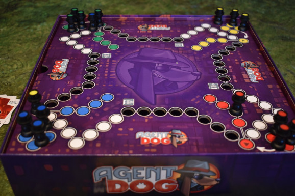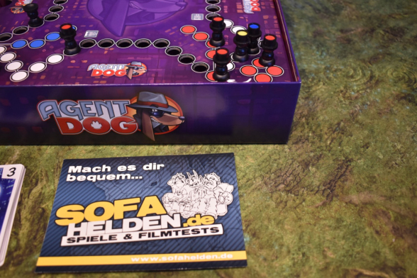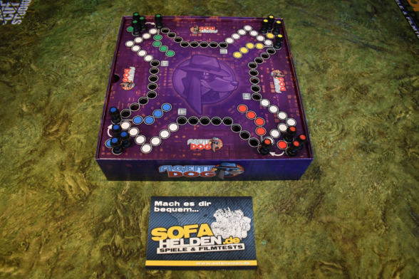 Ansonsten ist alles wie beim Original. Ihr kämpft Euch nach vorne, benötigt Rauskommen-Karten, um Eure Figuren ins Spiel zu bringen und dürft auf den Zielfeldern weder schlagen noch überspringen. Wichtig zu erwähnen ist noch die Spieldauer. 45 Minuten sind schon arg kurz und wahrscheinlich nur möglich, wenn man eher friedfertig oder ohne groß nachzudenken spielt. Agent Dog ist sehr taktisch, weshalb man einfach nachdenken muss und dank der untergetauchten Figuren teilweise auch seinen zuvor überlegten Zug noch einmal neu überdenken muss. Wir haben für unsere Runden im Schnitt zweieinhalb Stunden gebraucht. Gerade wenn die „brennende vier“ zum Einsatz kam, wurden die Karten quasi neu gemischt und es war wie ein Neustart.
