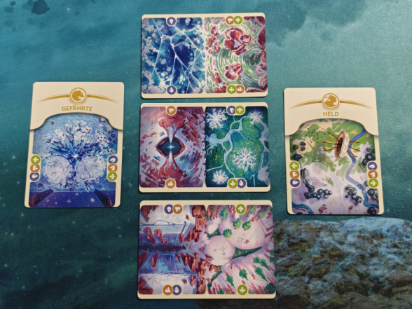 Regions-Typen im Allgemeinen sind eher thematisch zu verstehen. Und das Set „Prüfung des Eises“ führt einen neuen Typ ein, die Tundra bzw. das Schneefeld. Es ist nicht auf Abenteuerkarten zu finden, aber dient als thematische Einbettung des Sets. Ähnlich führt das dritte Set „Geflüster aus dem Labyrinth“ den Regions-Typ Stadt ein.