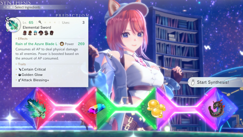 Bei der Synthese werden gesammelte oder gekaufte Materialien zu neuen Gegenständen verbunden. Dazu wird zunächst der gewünschte Gegenstand ausgewählt. Anschließend müssen die verwendeten Materialien ausgewählt werden. Passen diese farblich zusammen, erhält der synthetisierte Gegenstand das Attribut des zuletzt verwendeten Materials. Anschließend kann der synthetisierte Gegenstand durch das Hinzufügen weiterer Materialien verstärkt und mit weiteren Attributen ausgetattet werden. Da jeder Gegenstand maximal drei zusätzliche Attribute erhalten kann, passiert es regelmäßig, dass das älteste Attribut überschrieben wird, was eine genau Planung erforderlich macht, wie der endgültige Gegenstand auszusehen hat. Sind die erforderlichen Materialien vorhanden, können auch bei der Nutzung von bekannten Rezepten mit einer leichten Abänderung damit verwandte Rezepte erlernt werden. Synthetisierte Gegenstände können gegen Geld außerdem einfach geklont werden, so dass ein Ausrüstungsteil, das besonders gut gelungen ist, gleich für alle Gruppenmitglieder bereitgestellt werden kann.