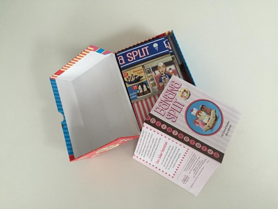 Banana Split ist das richtige Spiel für Zwischendurch. Egal ob man nun mit zwei oder vier Personen spielt, es macht so und so Spaß. Die Regeln sind super einfach und selbst ein Kind kann das Spiel sehr schnell erlernen und verstehen. Etwas stört mich aber trotzdem. Erstens ist der Spielplan gefaltet und muss vor jedem neuen Spielen „entfaltet“ werden. Zweitens finde ich das Layout der Toppingkarten und der Punkte langweilig. Für einen Preis von nicht mal 15 Euro kann man aber auch keine hochwertigen Materialien und einen Designhammer erwarten. Wer seinen Kindern eine Freude machen möchte und selbst mal für kurze Zeit ein Besitzer einer Eisdiele sein möchte, der sollte sich dieses Spiel kaufen. Ich mag es jedenfalls und es wandert auf meinen Wieder-einmal-spielen-Stapel.