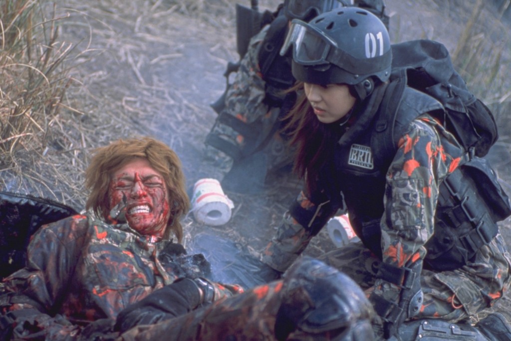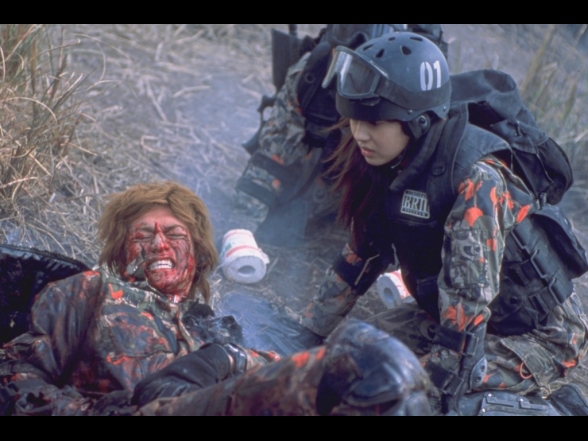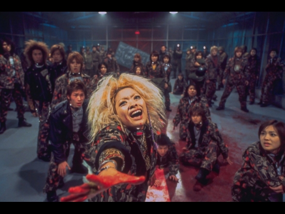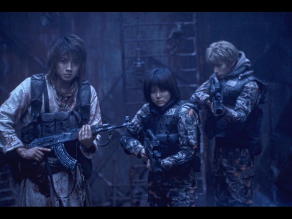 Battle Royale 2 mag nur im groben Sinne als eine Fortsetzung herhalten. Nachdem Kinji Fukasaku verstorben ist, sind die Erlebnisse und schwere Zeit des Sohnes und womöglich auch zahlreiche äußere Einflüsse unweigerlich mit in den Film eingeflossen. Der Film geizt ganz im Gegensatz zum ersten Teil nicht mit zerfetzten Körpern oder schier endlosen Kugelschlachten und auch die offensichtliche Kritik an die globale Einmischung Amerikas in der Welt wird deutlich dargestellt. Die mehrmals deutlichen Aufzählungen vieler Staaten, die Alle unter dem Verfall der Moral und von Amerika angegriffen wurden, zeigt dies doch recht auffällig. Die Story selbst wirkt ein wenig zusammengeworfen und weist zum Teil diverse Logiklöcher auf. In der Standardfassung bleiben die Charaktere zum großen Teil inhaltsleer und nur in der 20-minütigen längeren Revenge-Fassung bekommt der Zuschauer wesentlich mehr Fülle. Auch die Rolle des anfangs offensichtlich depressiven und dann halb durchdrehenden und medikamentensüchtigen Lehrer Riki Takeuchi (gespielt von Riki Takeuchi) endet in einem so irrwitzigen Showdown, der manchen Zuschauer völlig verwirrt zurücklassen wird. Nichtsdestotrotz ist der Film ein durchaus mutiger Film, der die politische Lage (bezogen auf die USA) in der Zeit kritisiert. Aber auch die die eigene Stellung der Jugendlichen, die während ihres Kampfes gegen die japanische Regierung eben auch Jene töten, für die sie eigentlich kämpfen, bringt gewaltige Emotionen in den Film, die den Zuschauer auch überlegen lässt und den Krieg von beiden Seiten betrachtet. Wer ist gut und wer ist böse?