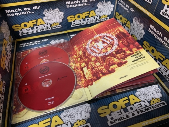 Details der Blu-ray Sowohl der Reqiuem Cut wie auch der Revenge Cut kommen mit einer vollständigen deutschen und japanischen DTS-HD MA 5.1 Tonspur daher. Die Dialoge sind gut verständlich, in den Actionszenen haben auch Surround und Bassboxen was zu tun. Störgeräusche und Tonabbrüche konnten nicht festgestellt werden. Bildtechnisch finden wir durchgehend ein deutliches Bildrauschen vor, was unter Umständen dem Ausgangsmaterial geschuldet sein kann. Capelight war bereits früher stets bemüht, Filme durch zu viele Filter nicht zu überstrapazieren. Nur wer wirklich nah am Fernseher sitzt, mag bei den heutigen durchschnittlichen 55“ das Rauschen als störend empfinden. Die Farben hingegen sind dafür absolut gelungen. Gerade in den Gebäudekämpfen finden wir die Farben authentisch und gut auf die Blu-ray gebracht.