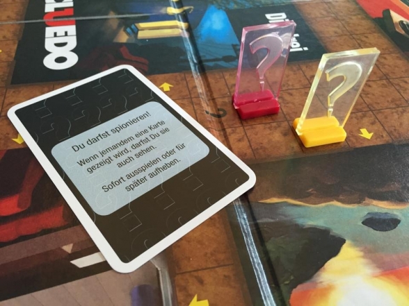 Nun geht es ans Eingemachte. Der Spieler darf nun einen Verdacht äußern und seine Mitspieler befragen. An dem Ort an dem der Spieler steht, darf nun noch einer der sechs Gegenstände und einer der sechs Verdächtigen genannt werden. Nachdem man die dazugehörigen Marken auf den Ort auf dem Spielbrett gelegt hat, muss der linke Spieler seine Karten durchforsten und eine dem Spieler zeigen, wenn sie zu seinen Verdächtigungen passt. Sollte er keine Karten dazu haben, ist der Spieler links neben ihm dran. Dies geht so lange, bis einer der Spieler eine Karte zur Befragung zeigen kann. Wenn kein Spieler eine Karte hat, sollte man sich nichts anmerken lassen, denn die Frage „Wer?“, „Was?“ oder „Wo?“ wurde soeben direkt beantwortet. Daher ist es auch wichtig, dass man die Spieler mit seiner Frage hin und wieder hinters Licht führt, sodass kein anderer einen Verdacht schöpft.