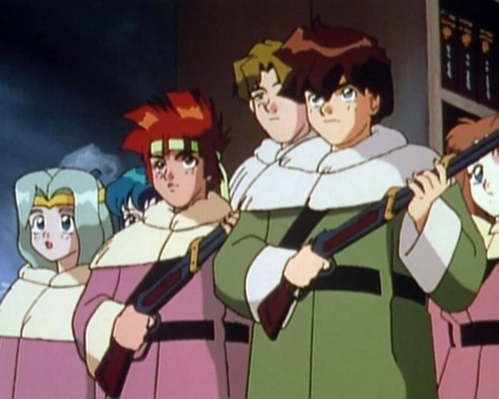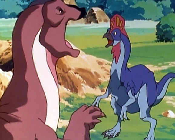 Da wir kürzlich die Animationsserie Jurassic World gesehen haben, liegt hier ein Vergleich nahe. Beide Serien sind ab zwölf und suggerieren Dinosaurier in ihrem Zentrum. Bei Jurassic World ist dem auch so und die Altersbeschränkung bezieht sich hier vor allem auf die Angriffe der Dinosaurier auf Menschen. Bei Der Planet der Dinosaurier gestaltet sich die Einstufung vermutlich etwas anders. Hier ist nach wenigen Minuten klar, dass diese Serie weniger für Kinder geeignet ist, da sie vor Sexismus nur so strotzt. Schon in einer der ersten Szenen versucht einer der Jugendlichen einem der Mädchen unter den Rock zu gucken und kommentiert das auch lautstark. Ebenso wird von der einen oder anderen Protagonistin die Oberweite immer wieder in Szene gesetzt. Hinzu kommt aus unserer Sicht, dass die Dinosaurier gerade am Anfang eher im Hintergrund bleiben und der Konflikt zwischen den Eingeborenen und den Jugendlichen eher im Zentrum steht. Das passt irgendwie nicht so recht zusammen. Ansonsten passt die Serie zum Stil anderer Animeserien aus den 90ern.