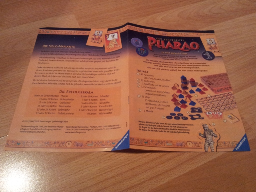 17.11.2015 von MarSRavensburger ist der führende Anbieter von Puzzles, Spielen und anderen Beschäftigungsprodukten in Europa und wohl jeder erkennt sofort das typische Markenzeichen, das blaue Dreieck, welches seit 1974 im Einsatz ist. Nachdem das erste Gesellschaftsspiel Reise um die Erde bereits im Jahr 1884 veröffentlicht wurde widmen wir uns heute der Neuauflage eines der aktuelleren Vertreter des Verlags und sagen Euch, ob sich ein Kauf von Der zerstreute Pharao lohnt...
