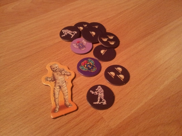 Chip 2: Die Mumie Wer den Chip mit der Mumie findet, der legt die Mumien-Figur bei sich ab und muss in der nächsten Runde aussetzen. Danach kommt die Figur zurück neben die Spielfläche. Der Mumien-Chip bleibt dabei unter der Pyramide liegen und somit im Spiel