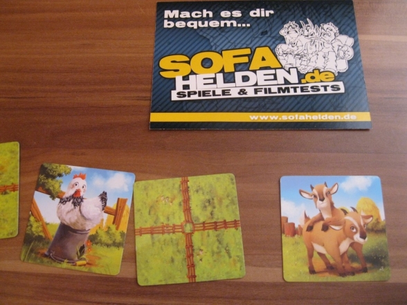 Beginnend mit dem Startspieler dürfen sich die angehenden Farmer reihum jeweils eine der vier Spielkarten aus der Mitte aussuchen und spielen. Dabei wird dieser Vorrat nach jedem Spieler wieder auf vier Karten aufgefüllt. Am Einfachsten sind die „Zaun“-Karten. Mit ihnen puzzelt man sich eine Farm zurecht. Dabei gilt es zu beachten, dass die neue Karte mit den bereits liegenden Karten zusammenpassen muss. Also kein Zaun in Gras enden darf. Es ist erlaubt, auch eine Lücke in einer Wiese zu lassen. Allerdings verliert man hierfür am Spielende für jeden freien Kartenplatz einen Punkt. Die Tierkarten darf man je nach Anzahl der abgebildeten Tiere gegen Tiermarker tauschen und anschließend beiseitelegen. Die Tiermarker legt man dann auf je einen freien braunen Kreis auf der Wiese. Kann man nicht alle Tiermarker ausspielen, so kommt der Rest wieder zurück in den Hühnerhof. Eine Besonderheit stellen die Wolfskarten dar. Wird eine aufgedeckt, muss sie sofort gespielt werden. Die Tierart, an die der Wolf denkt, wird verjagt. Das heißt, alle Tiere, die sich nicht in einem komplett eingezäunten Bereich befinden, laufen davon und werden zurück in den Hühnerhof gelegt. Dann wird die Wolfskarte beiseitegelegt, eine neue Spielkarte umgedreht und das Spiel geht weiter. Das Spielende ist erreicht, sobald alle Karten vom Nachziehstapel und aus der Mitte aufgebraucht sind. Anschließend werden alle Tiere mit je einem Punkt gewertet. Bei den Maisfeldern werden nur die gewertet, die komplett eingezäunt sind und das ohne Tiere, schließlich würden die den Mais vermutlich einfach auffressen. Abschließend muss noch für jede Einzäunung, in der sich eine freie Stelle (also eine fehlende Karte) befindet, ein Punkt abgezogen werden. Am Ende gewinnt der Spieler mit den meisten Punkten. Bei einem Gleichstand gewinnt als erstes der Spieler, der Schweine hat, dann der, der Ziegen hat und dann der mit Hühnern. Als besonderes Gimmick findet man am Ende noch eine Tabelle mit einer motivierenden Bewertung der jeweiligen Punktezahlen.