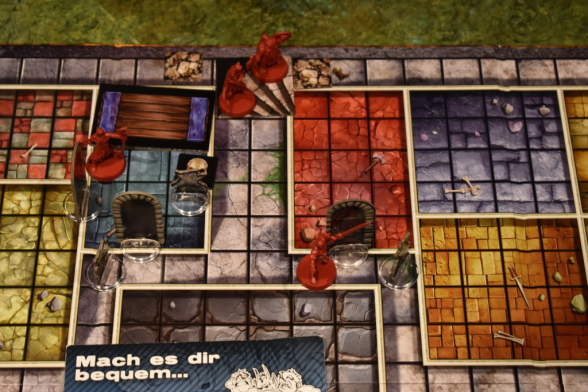 Die Person, die Zargon spielt, sollte die sein, die die Regeln am besten kennt und am aufmerksamsten ist. Denn er muss darauf achten, wann er Bereiche aus dem „Buch der Herausforderungen“ vorlesen muss, und auch, wann die Heroen die Siegbedingung erfüllt haben. Sollte einer der Heroen sterben, ist das erstmal nicht schlimm. Außer er stirbt alleine in einem Raum, dann wird nämlich seine gesamte Ausrüstung von den Monstern gestohlen. Ansonsten kann ein anderer Held seine Ausrüstung aufsammeln. Ihr müsst aber dann für das nächste Abenteuer einen neuen Heroen erstellen. Das Gold ist verloren. Sollten alle vier Heroen sterben, habt Ihr verloren.