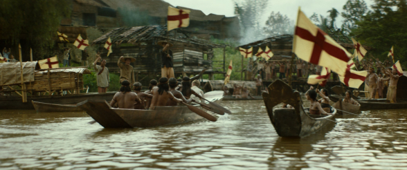 Mit Im Herzen des Dschungels präsentiert Regisseur Michael Haussman einen biografischen Historienfilm im Gewand eines Abenteuerfilms, der ohne große Effekthascherei die faszinierende Geschichte des Briten James Brooke erzählt. Ganz ähnlich wie seinerzeit 1492 - Die Eroberung des Paradieses von Ridley Scott verzichtet auch Haussmann dabei darauf, den Informationen, die man bei etwas Interesse für die historischen Hintergründe nicht ohnehin schon besitzt, etwas Neues hinzuzufügen. Stattdessen liefert er lediglich die markantesten Eckpunkte in linearer Abfolge, ohne auf diese tatsächlich näher einzugehen, was an mancher Stelle auf Grund der Kürze der Abhandlung durchaus etwas unbefriedigend erscheint. Dennoch ist der Vergleich mit Ridley Scotts Werk ist nicht allzu sehr aus der Welt gegriffen, denn Im Herzen des Dschungels hat viele Merkmale, die direkt Erinnerungen wecken. Beeindruckende Naturaufnahmen, ein absolut stimmiger Soundtrack, sowie die ein oder andere unerwartet deftige Gewaltspitze, aber auch der größtenteils eher ruhige und dialogorientierte Erzählstil - alles wirkt hier ein wenig bekannt, jedoch nicht ganz so aufdringlich auf Bildgewalt und epische Eindrücke getrimmt. Haussman geht hier deutlich zurückhaltender mit seiner Erzählung um, verpasst es dabei aber im Gegenzug, echte Höhepunkte zu setzen. Letztendlich hat Im Herzen des Dschungels markante Ausbrüche aber auch gar nicht nötig, denn die Geschichte Brookes ist faszinierend genug, um den Zuschauer durchwegs zu unterhalten. Dazu trägt selbstverständlich auch die schauspielerische Darbietung von Jonathan Rhys Meyers bei, dem es scheinbar mühelos gelingt, authentisch und glaubwürdig zu wirken, und dabei die benötigte emotionale Tiefe zu erzeugen. Beinahe verblassen neben ihm die übrigen Darsteller, die ebenfalls sehr gut besetzt wurden und absolut souveräne Arbeit leisten.