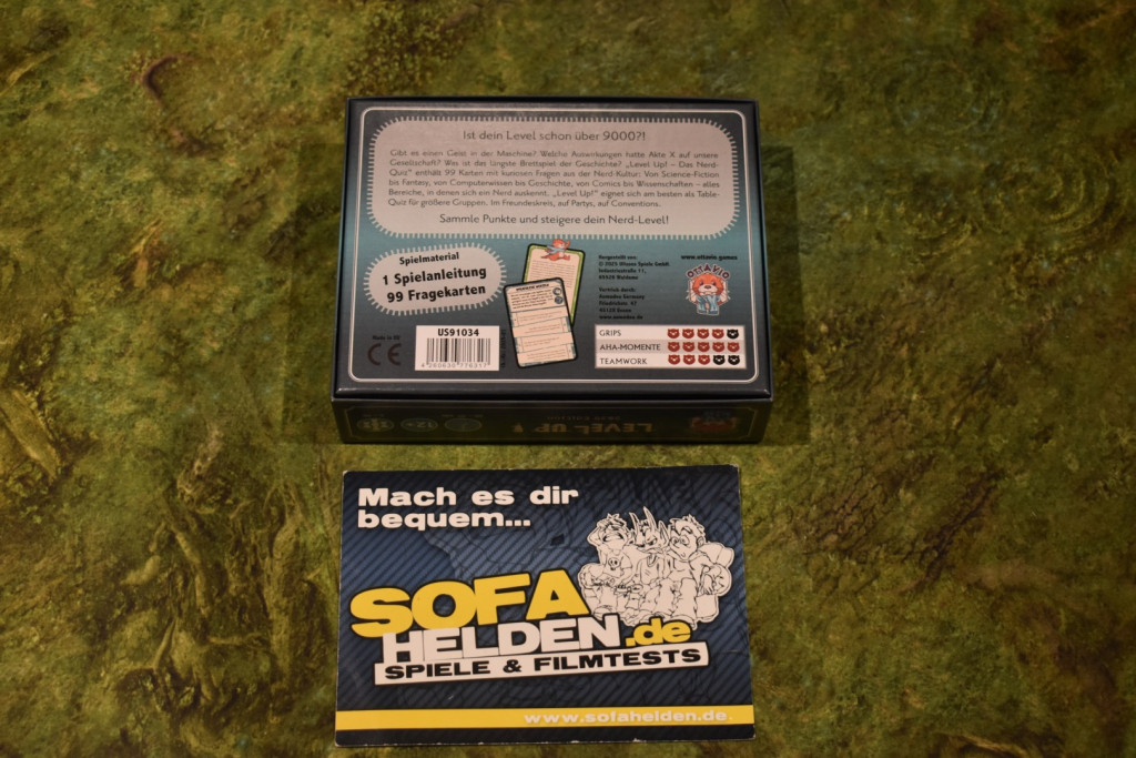 Wie bewertet man ein Quiz? - Schwierig. Denn die Regeln oder Regelempfehlung für Level Up! Das Nerd Quiz ist nichts Neues. Bleiben also die Fragen übrig. Diese sind in meinen Augen ein wenig durchwachsen. Während manche mein Nerd-Herz höher schlagen lassen, lassen andere mich nur mit dem Kopf schütteln und fühlen sich nicht wie Nerd-Fragen an, sondern eher wie normale Quizfragen. Nimmt man aber die Definition von Nerd, so gehören die „normal empfundenen“ Fragen auch mit dazu. Wir haben es aber auch nicht als Tablequiz gespielt, sondern als Fragerunde in einer kleinen Gruppe. Hier kamen auch einige Aha-Momente auf und wir hatten Spaß dabei. Am Ende würde ich diesem Spiel eine Wertung von 6-7/10 Punkten geben. Vielleicht hätte man bei den Regeln etwas mehr Nerdtum und ein wenig Pepp mit einbauen können. So ist es „nur“ ein Quiz, das aber uns Nerds eben von der Thematik her mehr anspricht. Ich persönlich hätte das Nerdtum aber etwas mehr eingeschränkt, beispielsweise auf Filme und Spiele und hätte die Physik und Astro-Fragen außen vor gelassen oder als Add-On. Die gibt es ja auch in „Normalo“-Quizzes.