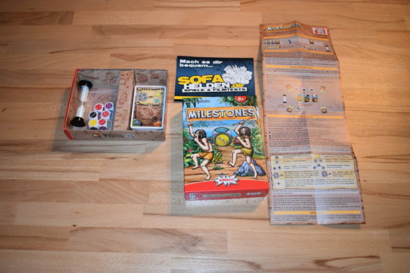 Eine Runde von Milestones dauert die durch die Sanduhr abgemessenen 3 Minuten. In dieser Zeit versuchen die Spieler mit den Würfeln möglichst viele Aufgaben zu erfüllen. Am Ende werden dann die Siegpunkte der Karten zusammengezählt und ein Blick auf die Auswertungstabelle geworfen. Hier kann man dann sehen, wie gut man als Steinzeitteam abgeschlossen hat.
