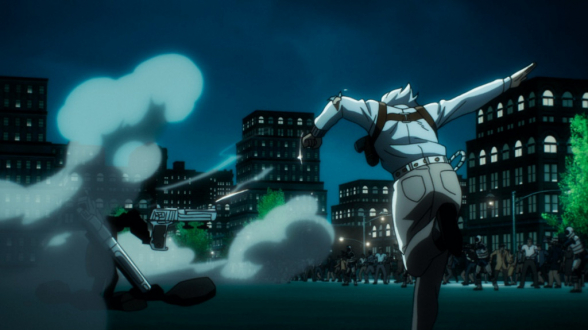 Genau so sollte ein Finale aussehen. Geschickt führt No Guns Life - Vol. 04 alle inhaltlichen Elemente zusammen, und lässt die Handlung in ein groß angelegtes, fulminantes Spektakel münden. Vermeintliche Nebenhandlungen fügen sich dabei stimmig in die Geschichte ein, alle bisherigen Figuren bekommen noch einmal ihren ganz persönlichen Auftritt, und ganz nebenbei werden die noch offenen Fragen beantwortet, was gleichzeitig für die ein oder andere Überraschung sorgt. Die beinahe fehl am Platz wirkenden Episoden vor dem Finale waren damit wie erhofft tatsächlich nur die kurze Ruhe vor dem Sturm - einem Sturm, der sich mit einem Donnerschlag zu einem regelrechten Orkan entwickelt. Neben spektakulären Actionsequenzen, die einem Finale absolut würdig sind, nutzt No Guns Life - Vol. 04 im Verlauf auch zahlreiche Rückblenden, um Zusammenhänge zu schaffen, sowie dem Geschehen zusätzliche emotionale Tiefe zu verleihen. Gerade Tetsuro wird durch die Entwicklung, die er in der zweiten Staffel, vor allem aber in den finalen Episoden durchläuft, endlich aus seinem Schattendasein befreit, und erzählerisch mit Juzo auf eine Stufe gestellt. Dies markiert schließlich einen längst überfälligen, aber genau zum richtigen Zeitpunkt umgesetzten Wendepunkt, der die Geschichte wunderbar abrundet. Sehr gelungen ist auch die abschließende Episode, die vor allem die menschliche Seite der vergangenen Ereignisse noch einmal Revue passieren lässt, und sowohl als harmonisches Ende funktioniert, wie auch als Übergang zu einer durchaus möglichen Fortsetzung. Nötig hätte No Guns Life diese allerdings nicht, denn auch wenn man sowohl vom gelungenen Setting, wie auch von den ansprechenden Figuren kaum genug bekommen kann, so bilden die finalen Episoden doch einen schönen, auch für den Over-Extender Juzo zufriedenstellenden Abschluss.