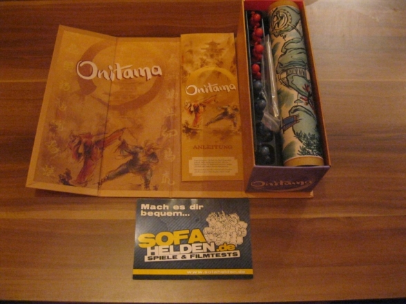 Die Verpackung von Onitama gibt viel her. Das Design passt zum alten, bereits in Stein gemeißeltem Spielprinzip. Verschlossen wird die rechteckige Verpackung über einen Magnetmechanismus. Im Inneren befindet sich ein vorbildlicher Kunststoffeinsatz, der Platz für alle Spielmaterialien bietet. So ist jede Figur einzeln eingefasst, es gibt ein Kartenfach und die Spielmatte wird aufgerollt in die Schachtel gesteckt. Das Spielmaterial selbst macht ebenfalls einen sehr guten Eindruck. Die Figuren wirken sehr robust und erinnern auch ein wenig an Schachfiguren. Die Karten sind sehr groß und machen einen wertigen Eindruck. Die aufgedruckten Spielzüge sind sehr gut erkennbar. Getoppt wird es aber von der Spielmatte. Sie ist aus einer Art Schaumstoff und erinnert vom Material her an ein Mousepad. Auf der Oberseite ist das Spielfeld aufgedruckt, die Unterseite ist mit einer rutschfesten Gummischicht versehen.