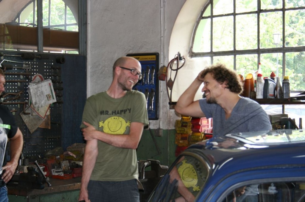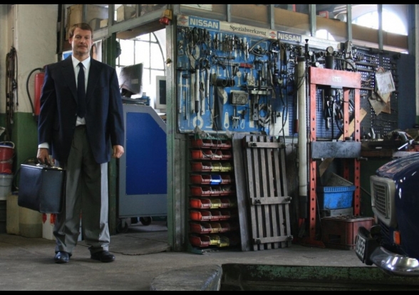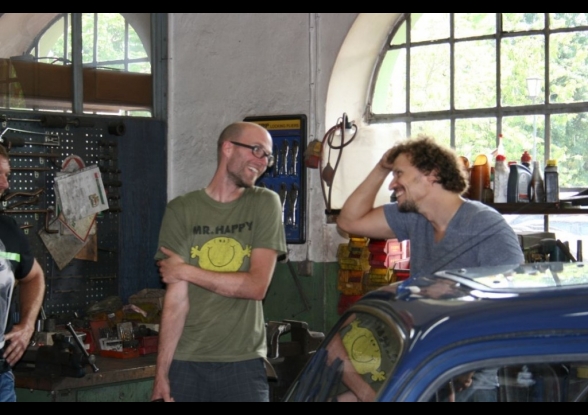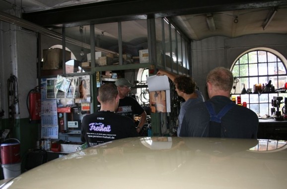 Als die eine Szene dann im Kasten war, ging es weiter mit der nächsten. Ein Finanzbeamter betrat die Werkstatt und überbrachte dem Mechaniker eine schlechte Nachricht. Vom Inhalt her werde ich Euch aber nicht mehr verraten, dafür müsst Ihr dann ins Kino gehen. Die Dreharbeiten sind mittlerweile abgeschlossen, doch bis der Film auf die Leinwand kommt, ist es noch ein weiter Weg. Der Film muss geschnitten werden, dann kommt noch die Filmmusik dazu und und und. Die Premiere wird voraussichtlich im Dezember stattfinden, wir freuen uns schon auf das fertige Produkt. Hiermit verabschieden wir uns vom Filmdreh, doch wir kommen wieder, denn einen Bericht über Steff (Produzent der Filmmusik) wird auf alle Fälle noch vor der Premiere erscheinen.