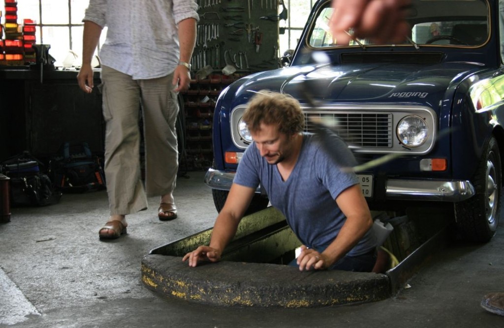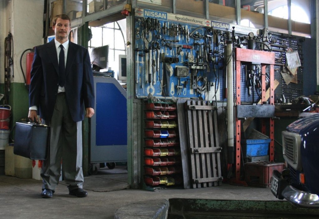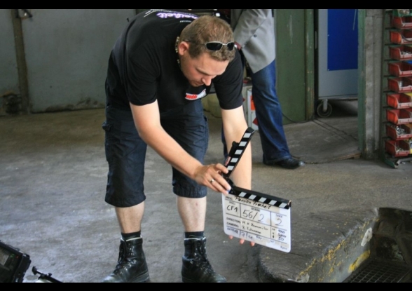 Der letzte Drehtag, doch von Anspannung war keine Spur. Marcus Kleinhans (Regisseur) und Andreas Jordan (Produzent) waren sehr entspannt, denn sie hatten nicht so viel zu tun wie sonst. Der Grund war folgendender: Burkhard Feige und Marcus H. Rosenmüller waren am Set und übernahmen an diesem Tag die Regie. Vormittags drehte die Crew mit Burkhard eine Szene am Irschenberg, nachmittags übernahm dann Marcus H. Rosenmüller, von allen „Rosi“ genannt, die Zügel. Die abzudrehende Szene wurde in einer alten Autowerkstatt gedreht, dort verhörten die beiden Kommissare Adnan Erten und Luky Zappatta einen Mechaniker. Doch bevor es zum eigentlichen Dreh kam, musste erstmal die Garage filmgerecht umgebaut werden. Kameramann Benno baute am Boden eine Schiene auf, auf der ein Schlitten und seine Kamera befestigt wurden. Ebenso wurden verschiedene Lichter aufgestellt, so dass die Beleuchtung auch passte. Rosi ging in der Zeit auf und ab und überlegte, von welcher Seite man welche Szene am besten drehen könnte. Er schaute sich jeden Winkel der Werkstatt an und klärte mit Kameramann Benno, was er von diversen Einstellungen halten würde. Sprüche wie: „Von hier aus könnte man eine gute Fahrt machen, oder was meinst du?“ kamen nicht nur einmal. Als dann alles drehfertig war, wurde die Szene erstmal ohne Kamera geprobt. Nach und nach füllte sich die Werkstatt mit Journalisten und dem Team, die Luft wurde dicker und der Raum heizte sich auf. Trotzdem waren die Schauspieler und Rosi sehr entspannt und ließen sich nicht durcheinanderbringen. Da merkt man einfach, dass Marcus H. Rosenmüller ein Profi in seinem Gebiet ist.