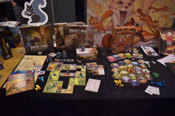 Den Samstag begannen wir wieder am Eingang West und Halle 3, mit Ronin von Queen Games. Da wir um 11:00 einen Termin bei Iongames zu einer Runde Atlas hatten, konnten wir es aber nicht zu Ende spielen. Neben weiteren Terminen folgten noch eine Runde Flip 7 an einem „Black Jack“-Tisch und eine Runde Heat, zu dem uns unser Lieblingspromoter von asmodee angestiftet hatte. Kurz vor Ende schafften wir es dann sogar noch Herr der Ringe - Das Schicksal der Gefährten zu spielen, was bei uns sehr durchwachsen abschnitt. Ob es an der deutsch-englischen Spielgruppe lag oder am Spielprinzip… wir sind uns nicht sicher. Mit fünf Spielen war der Samstag dann auch der Tag, an dem wir die meisten Spiele spielen konnten.
