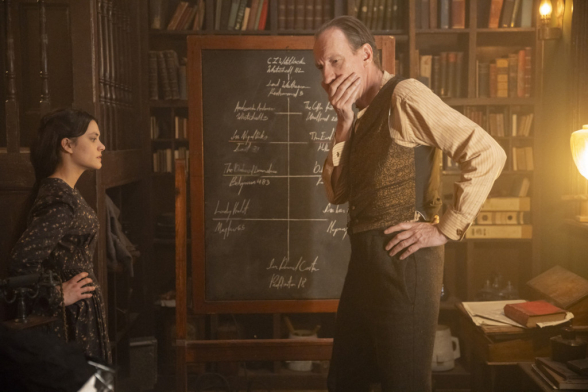 Fans des genialen britischen Detektivs, seid gewarnt! Zwar orientiert sich Sherlock & Daughter an der ursprünglichen Vorlage und nutzt bestimmte Charaktereigenschaften, Figuren, Locations sowie andere Details zur Verbindung. Letztendlich bietet die Serie aber eine völlig neue, eigenständige Geschichte rund um das Leben von Sherlock Holmes, und weicht damit stark von Altbekanntem ab. Grundsätzlich ist die Handlung dabei im Anschluss an Holmes´ Kampf gegen seinen Erzfeind Professor James Moriarty angesiedelt, der hier zwar auch auftritt (und von Dougray Scott herrlich bizarr und ein wenig Over-the-top dargestellt wird), jedoch einer völlig anderen Bedrohung den Platz als Gegenspieler überlassen hat. Im Mittelpunkt der Geschichte steht - wie der Titel bereits vermuten lässt - die Beziehung zwischen Sherlock Holmes und seiner vermeintlichen Tochter, was dank der sehr guten Chemie zwischen David Thewlis und Blu Hunt sowie der dadurch entstehenden Dynamik innerhalb der Inszenierung wunderbar funktioniert und das Geschehen stets unterhaltsam gestaltet. Für die benötigte Spannung sorgt unterdessen die begleitende Haupthandlung, die sich zum einen in die Suche nach den entführten Gefährten Holmes´, zum anderen in die Konfrontation mit einem mysteriösen Verbrechersyndikat gliedert, und sich durch die gesamten acht Episoden der ersten Staffel zieht. Auf einzelne Kriminalfälle oder unnötige Nebenhandlungen wird hierbei zugunsten des Auf- und Ausbaus der Geschichte bewusst verzichtet. Zahlreiche Wendungen halten die Erzählung dabei durchwegs spannend, während dezent aber harmonisch eingesetzter Humor für eine gewisse Auflockerung sorgt, ohne den Ernst des eigentlichen Geschehens zu vernachlässigen. Stilistisch setzt Sherlock & Daughter auf eine authentische Ausstattung sowie einen wunderbaren visuellen Retro-Look, der sich gekonnt von den aktuell üblichen Hochglanzproduktionen abhebt und sogar ein wenig Theater-Flair versprüht, was hervorragend zur generellen erzählerischen Ausrichtung der Serie passt.