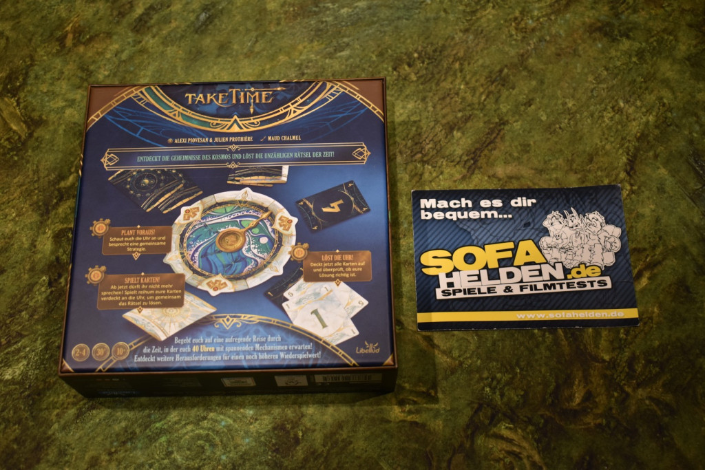 Auch wenn das Ganze nach Zeitdruck klingt, spielt Ihr Take Time in Ruhe nacheinander im Uhrzeigersinn. Wenn Ihr an der Reihe seid, legt Ihr eine Eurer Handkarten verdeckt an eine der sechs Bereiche der Uhr. Dabei solltet Ihr Eure zuvor besprochene Taktik beachten und die Tatsache, dass die Karten, die am Ende an der Uhr liegen, eventuell Bedingungen erfüllen und in Ihrer Summe aufsteigend sein müssen. Außerdem gilt bei fast jeder Uhr, dass die Summe der anliegenden Karten nie größer als 24 sein darf. So spielt Ihr reihum alle zwölf Karten aus, bis es zur Auflösung kommt. Dabei deckt Ihr die Karten auf, prüft, ob die Summen der Karten aufsteigend sind, und Ihr die Bedingungen der Uhr erfüllt habt. Ist das der Fall, gilt die Uhr als gelöst und Ihr fahrt mit der nächsten fort. Erfüllt Ihr nicht alle Bedingungen, könnt Ihr entweder ein Aufdeckplättchen aufdecken und die Uhr wiederholen oder sie überspringen und in einen speziellen (anfangs leeren) Umschlag legen und später spielen.