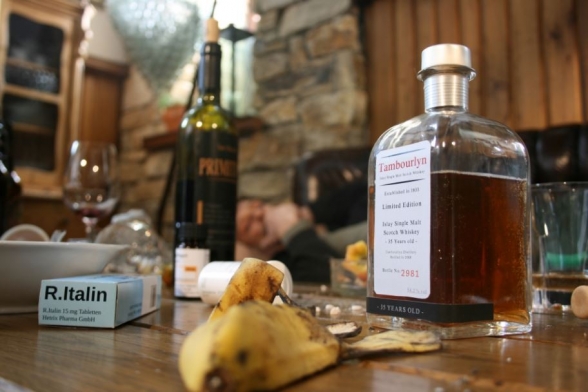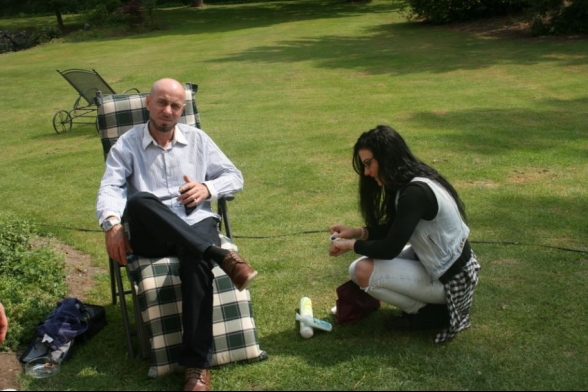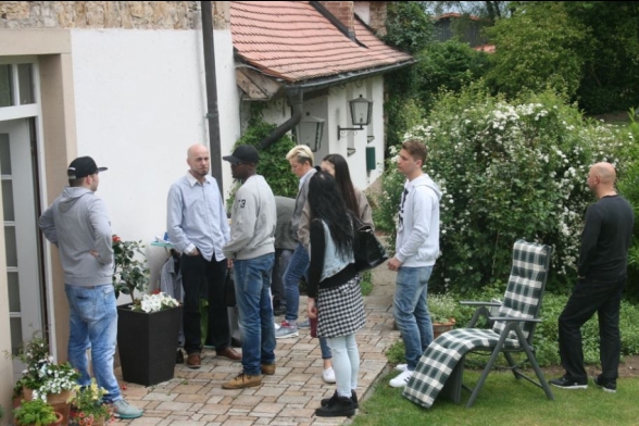 Ein paar Stunden später: Heute wird nur mit Mika Metz gedreht, der die Hauptrolle Nils Pein spielt. Der Drehplan ist sehr dicht und lässt kaum Luft, Kevin hat alles bis aufs kleinste Detail geplant. Wir befinden uns in einer großen Villa mit einem großen Froschteich, einem Pferdestall und noch einigen anderen Gimmicks, die sich nur reiche Menschen – wie zum Beispiel unser Doktor Pein – leisten können. Die erste Szene zeigt den Verfall und den sozialen Untergang des Hauptdarstellers durch Medikamente, Alkohol und Trauer. Drehort ist in der Villa, in der einige Szenen mit dem Doktor entstehen. Mehr Infos darf ich nicht rausgeben und will ich ehrlich gesagt auch nicht, ihr sollt Euch schließlich den Film auch noch anschauen.
