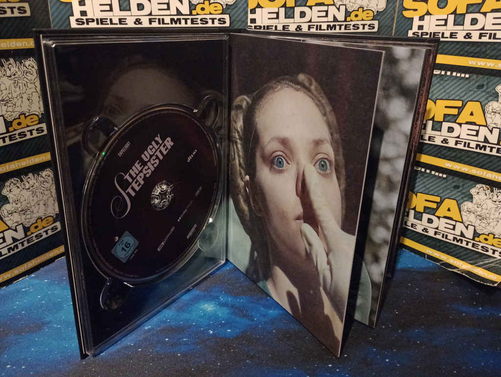 Das Mediabook wird wie bei Capelight Pictures üblich von einer losen J-Card umschlossen, auf der die Inhaltsangaben und Details zu finden sind. Das Cover des Mediabooks zeigt Hauptdarstellerin Lea Myren in einer Art "Bilderrahmen", der mit einem dezenten Glanzfinish versehen wurde, ebenso wie das obligatorische "Schuh-Motiv" auf der Rückseite. Der Innendruck besteht aus zwei Szenenmotiven, die auf dem Booklet fortgesetzt werden. Letzteres umfasst 24 Seiten und bietet ein von Victoria Lang verfasstes Essay zu The Ugly Stepsister und den bereits seit Jahrhunderten etablierten Schönheitswahn in der Gesellschaft, begleitet von zahlreichen Szenenbildern aus dem Film. Cover & Bilder © capelight pictures OHG / © Marcel Zyskind / Produktfotos: www.sofahelden.de Das Fazit von: MarS