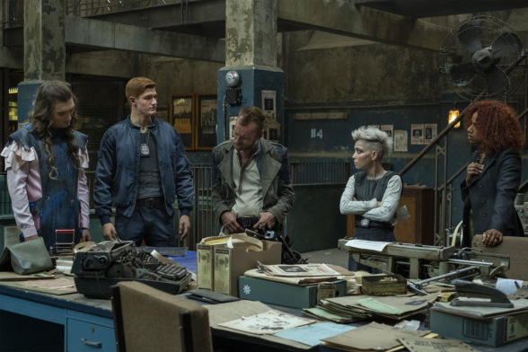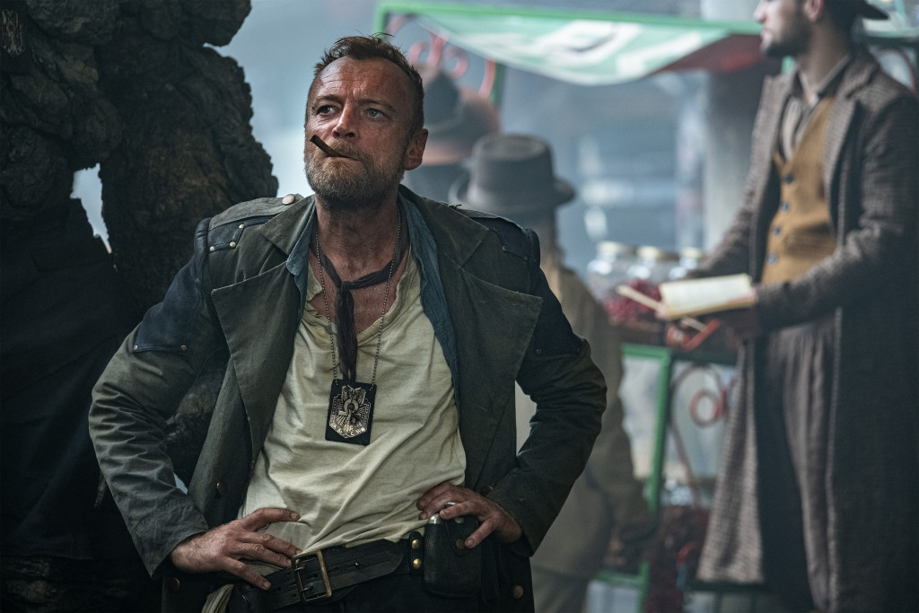 Um es vorwegzunehmen: Ja, The Watch hat durchaus das Potential, sich zu einer Kultserie zu entwickeln. Schon wenige Momente, nachdem man das Scheibenwelt-Universum und die Stadt Ankh-Morpork betreten hat, fühlt man sich, als wäre man Per Anhalter durch die Galaxis hier gelandet, denn der Einfluss Douglas Adams´ auf die Romane Terry Pratchetts findet sich auch in den acht Folgen von The Watch einfach überall wieder. Und das gilt nicht nur für allerlei seltsame Wesen und durchgeknallte Charaktere, sondern auch für die vielen absurden, skurrilen Ideen innerhalb der Geschichte, das chaotische Geschehen, sowie den schrägen, einfach herrlich doofen Humor. Ständig fragt man sich als Zuschauer, wo man hier eigentlich gelandet ist, denn wirklich einordnen lässt sich The Watch nicht. Hier findet man Elemente einer Fantasygeschichte, ebenso aber auch Science-Fiction Aspekte, was es einfach unmöglich macht, auch nur im Ansatz so etwas wie eine zeitliche Eingrenzung zu erkennen. Die Scheibenwelt ist eben eine ferne abgenutzte Dimension, und nutzt dementsprechend alles, was sich harmonisch, oder auch nicht harmonisch, zu einem großen Ganzen zusammenfügen lässt. Man findet Vampire, Werwölfe, Drachen und Trolle, es gibt moderne Technik, aber auch futuristische Technologie, ebenso wie persiflierte Technik (einfach großartig: Kobolde sitzen in Überwachungskameras, und zeichnen die Ereignisse, die sie durch die Kameralinse beobachtet haben). Magie und Zauberei sind gängige Bestandteile des Lebens, anstatt Schusswaffen findet man handliche Armbrüste, Äxte, Schwerter.